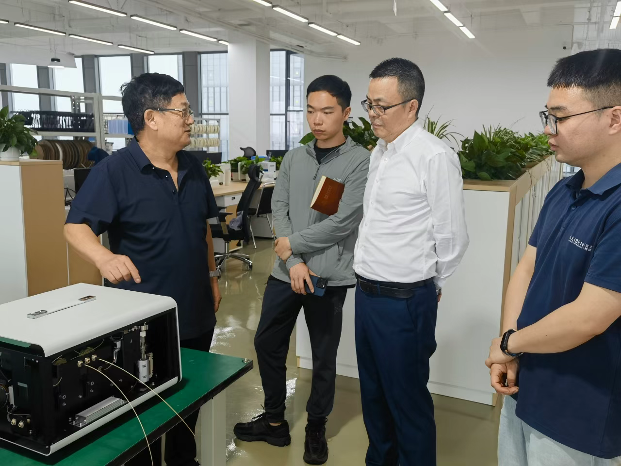 6 月 24 日,四川创新发展投资管理有限公司(以下简称“川创投”)董事长王文忠一行莅临艾立本科技彭州总部参观指导,艾立本科技董事长段忆翔出席接待并陪同参观。段忆翔董事长对川创投领导们的到访表示诚挚欢迎,向他们深入介绍公司发展历程和多元化的业务布局,带领川创投领导一行参观设备生产车间,详细讲解了各类产品的结构性能与应用场景,全方位展现了艾立本在高端仪器开发与制造领域的创新成果和技术实力。有效增进了来访领导对公司产品的直观认知与深度理解,为双方未来合作铺就了广阔前景。